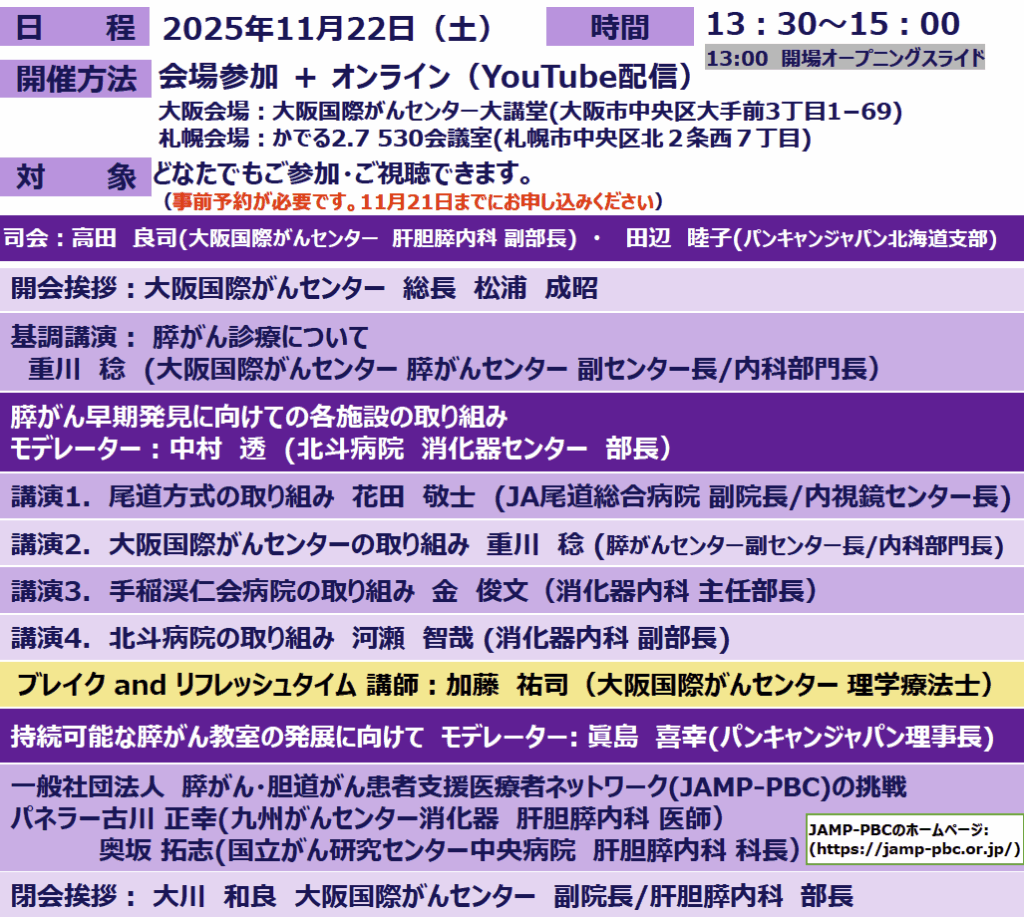 第5回合同膵がん教室 11月22日(土)13:30-15:00開催