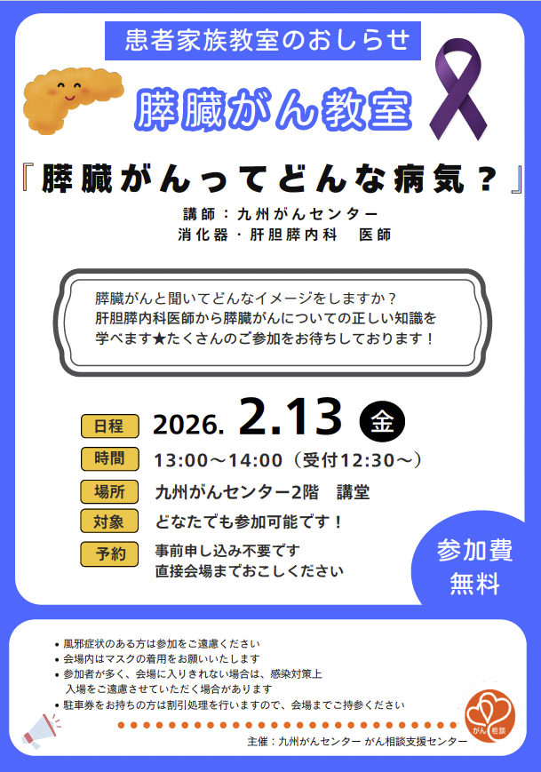 九州がんセンター 膵臓がん教室 2月13日開催!